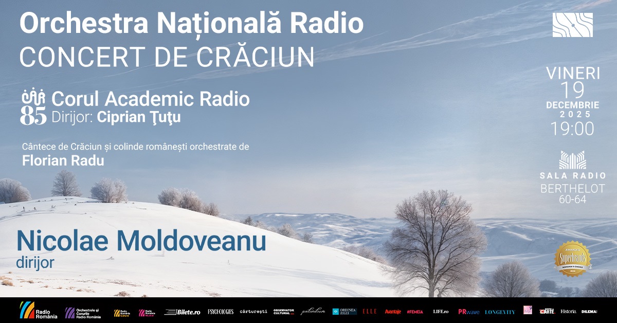 Vineri, 19 decembrie, vă invităm la Sala Radio să vă bucurați de o seară specială de cântece internaționale de Crăciun și colinde românești (în orchestrația semnată de Florian Radu). Sub bagheta dirijorului Nicolae Moldoveanu, Orchestra Națională Radio și Corul Academic Radio (pregătit de dirijorul Ciprian Țuțu) vor recrea atmosfera sărbătorilor de iarnă prin piese ca A Christmas Fantasy, Bună dimineața la Moș Ajun, Astăzi s-a născut Christos, Sus la Poarta Raiului, O, ce veste minunată, Praznic luminos ș.a.