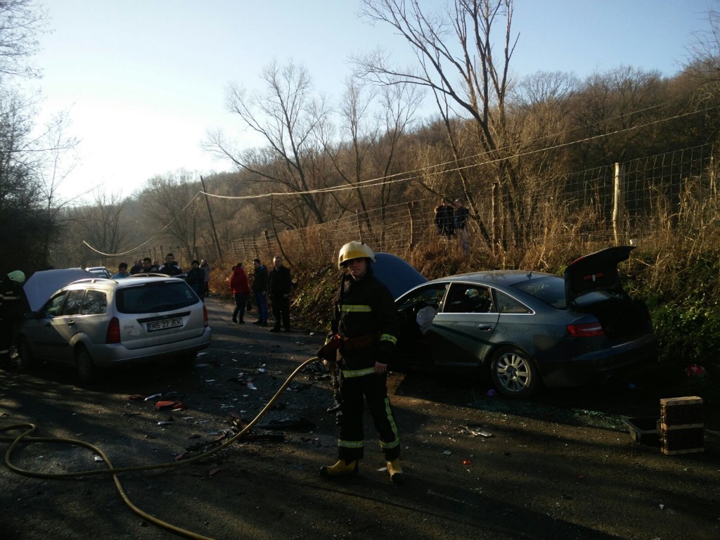 În accident au fost implicate trei autoturisme, iar pompierii au fost solicitați, prin numărul unic de urgență 112, la ora 11 și 2 minute.