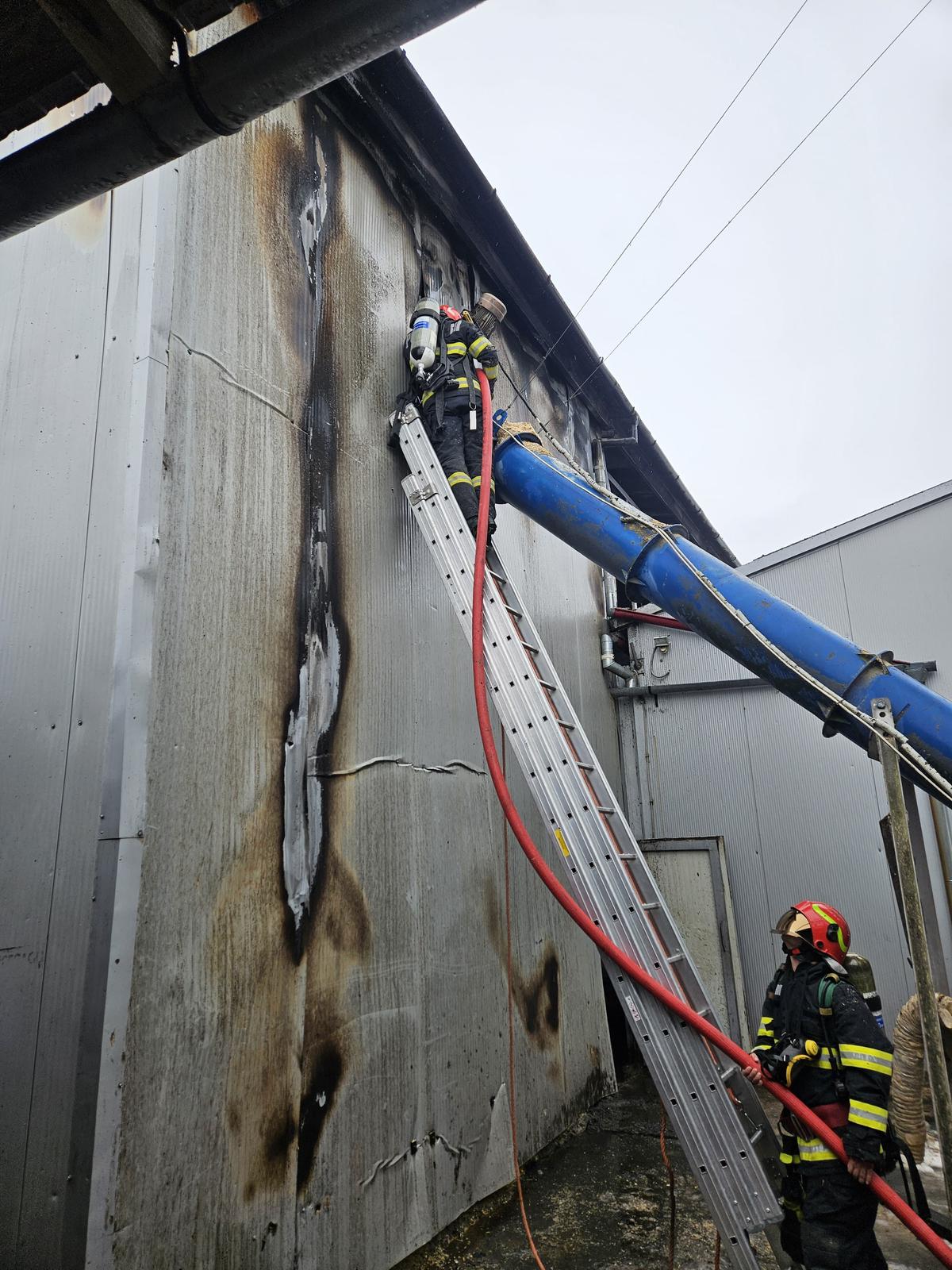 Cinci tone de materii prime au ars, aseară, în incendiul de la abatorul din Gheorgheni