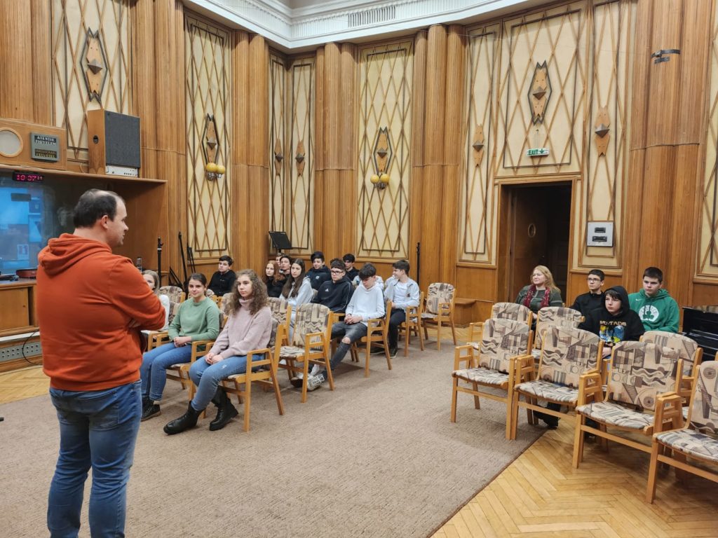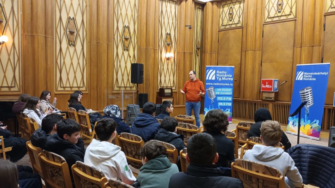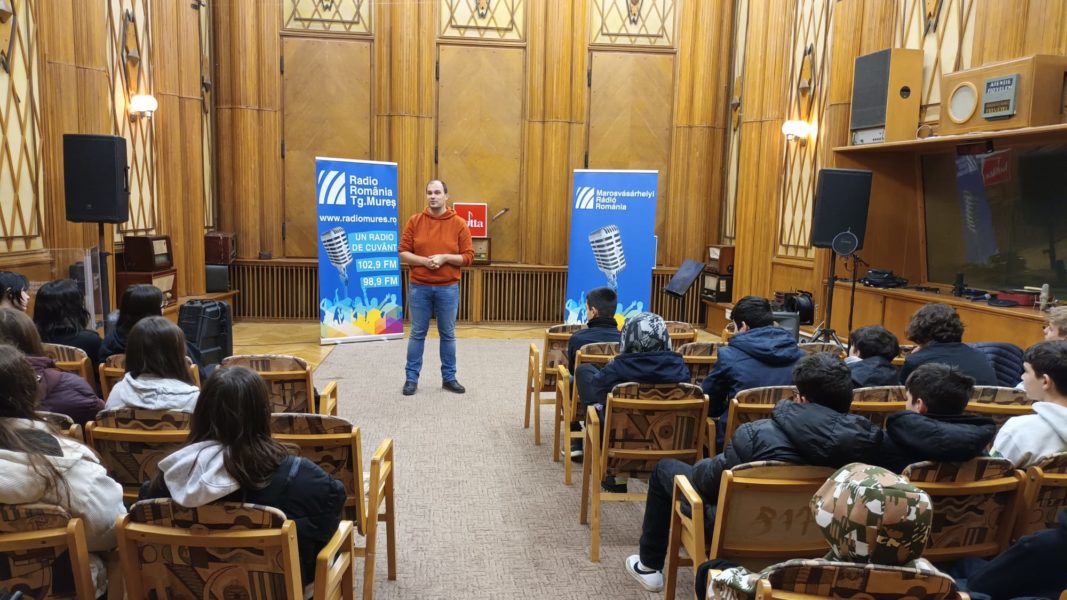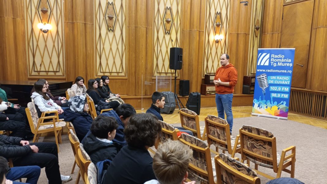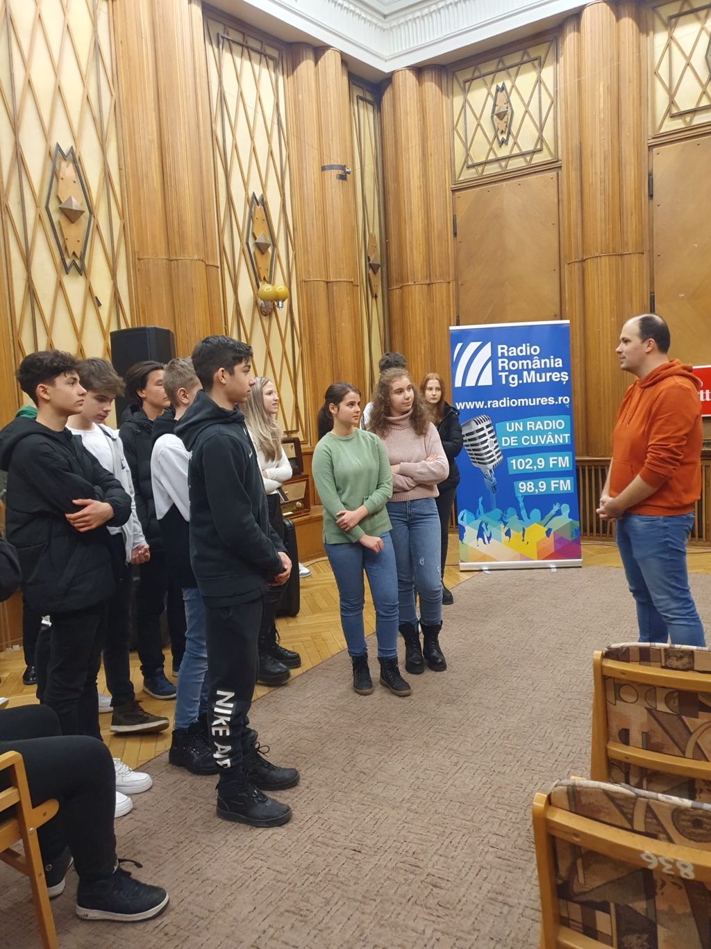Elevi ai clasei a VIII-a B de la Școala Gimnazială ”Tudor Vladimirescu”, însoțiți de diriginta Elena Breja, și ai clasei a VII-a A de la Colegiul Național ”Alexandru Papiu Ilarian”, însoțiți de diriginta Daniela Claudia Sabău, au avut posibilitatea să se familiarizare cu noțiuni de bază în jurnalismul radio și totodată să afle istoria Radio Tg.Mureș, care zilele acestea serbează 65 de ani de la prima sa transmisiune.