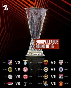 Optimile de finală sunt programate în două manșe, în zilele de 6 și 13 martie, cu confruntările: