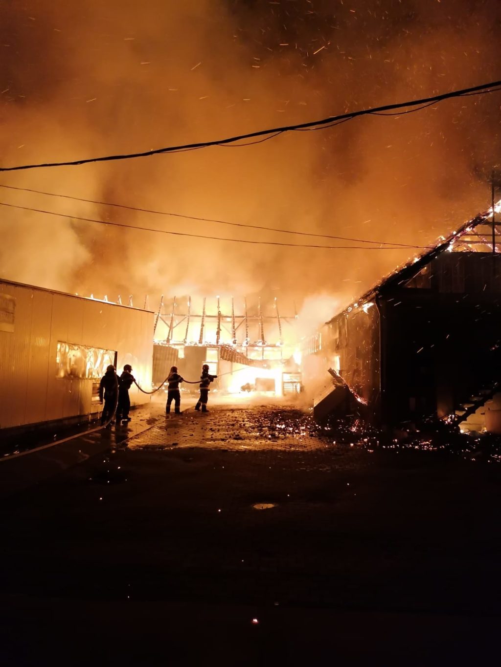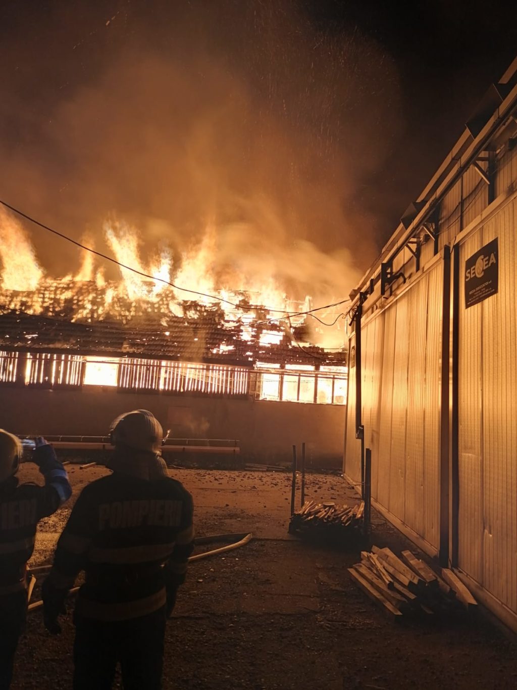Incendiul violent de la Fabrica de mobilă din Reghin a fost stins. Nu sunt victime