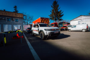 Este vorba despre un autoturism Dacia Duster pe care au fost instalate echipamente care permit coordonarea intervenției rapid și modern.