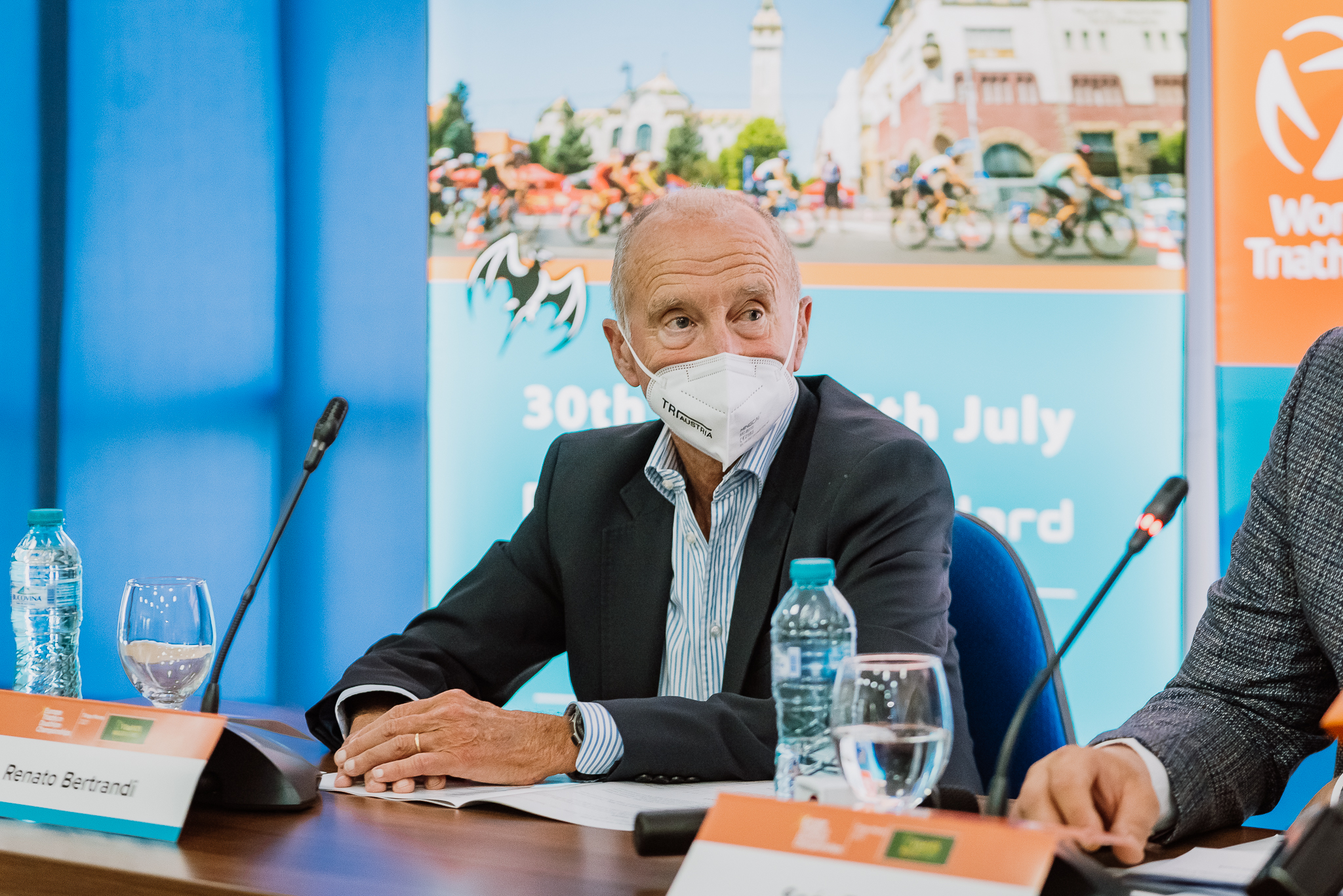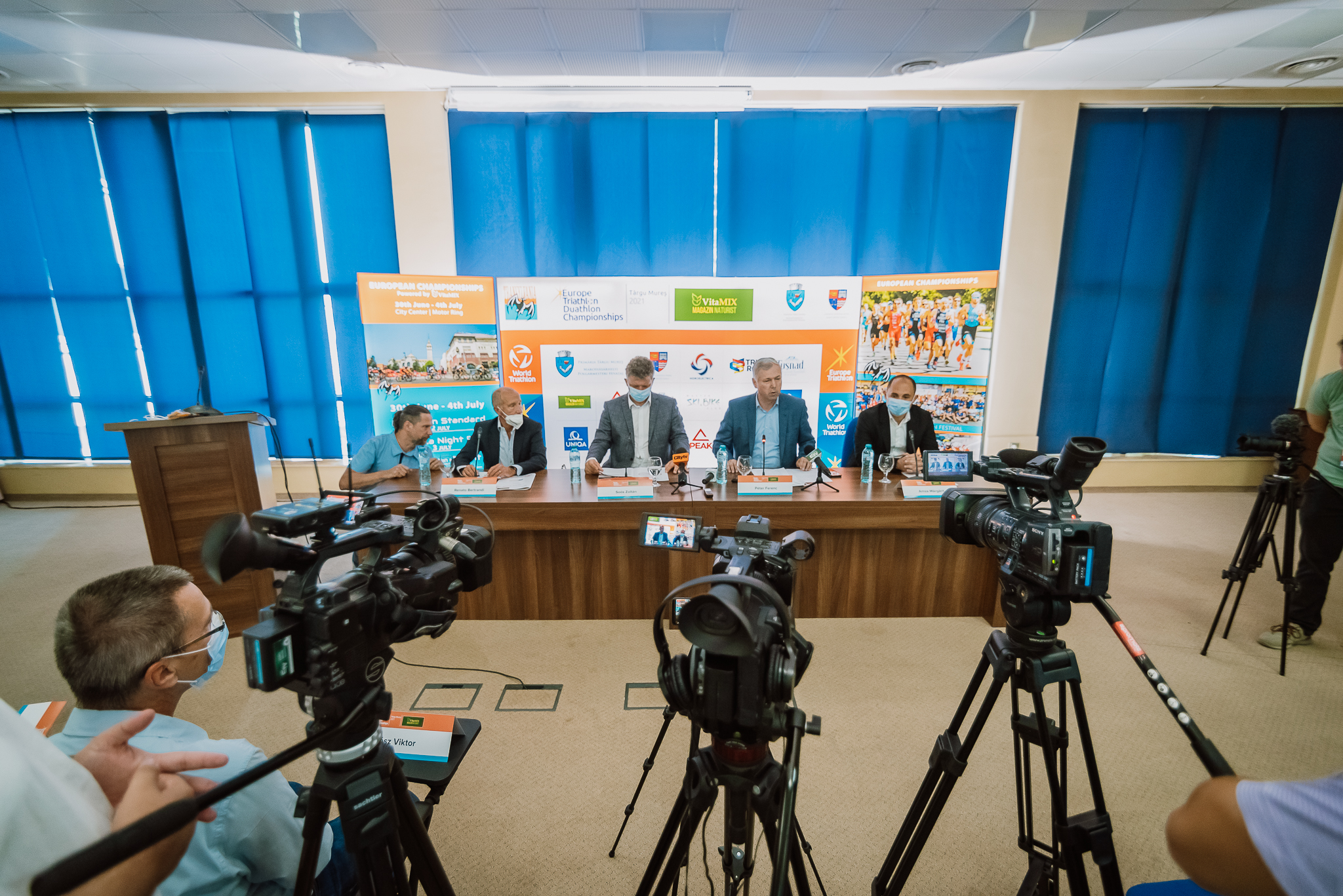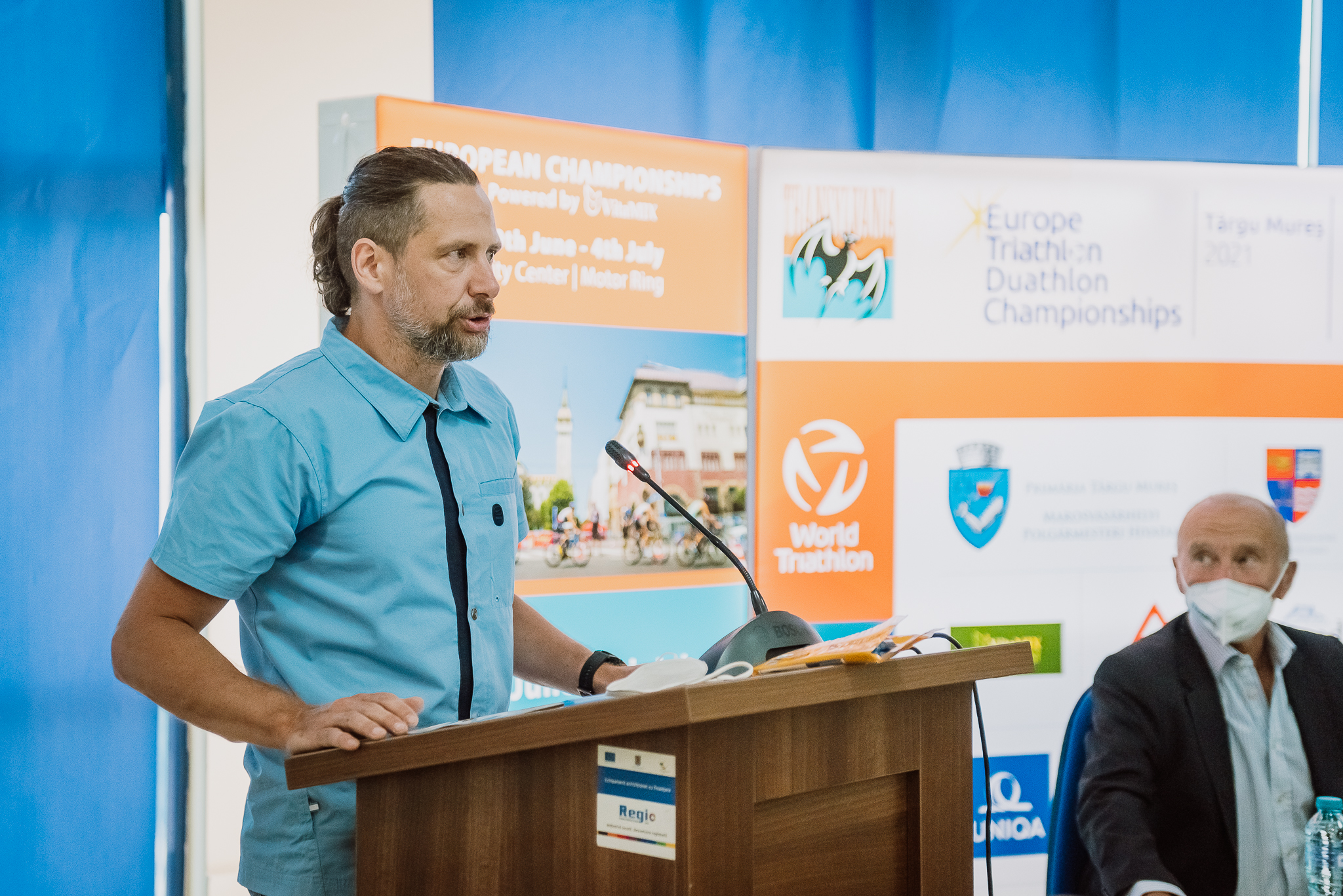 La conferința de presă organizată joi, 1 iulie, la Hotel Grand din Tg.-Mureș, cu prilejul Campionatelor Europene de duathlon, au luat cuvântul Soós Zoltán – primarul orașului gazdă, Péter Ferenc – președintele Consiliului Județean Mureș, italianul Renato Bertrandi – președintele Federației Europene de Triatlon și Amza Mărgărit – managerul manifestării sportive. În Sala Grand a fost prezent și Vlad Stoica – președintele Federației Române de Triatlon.