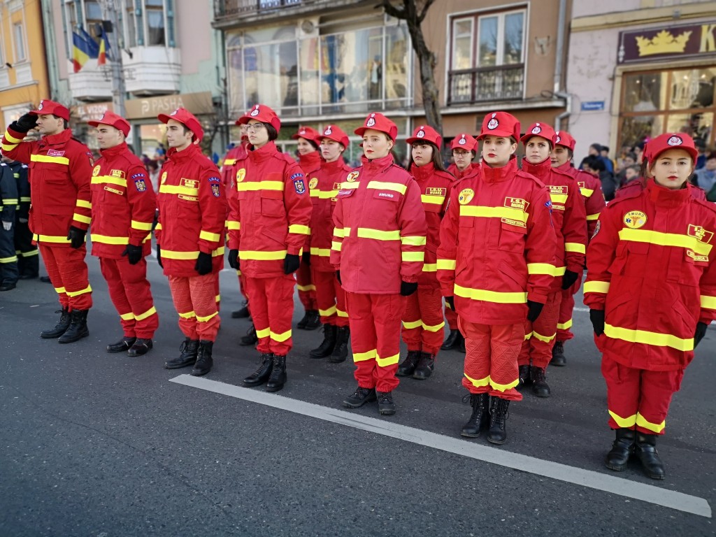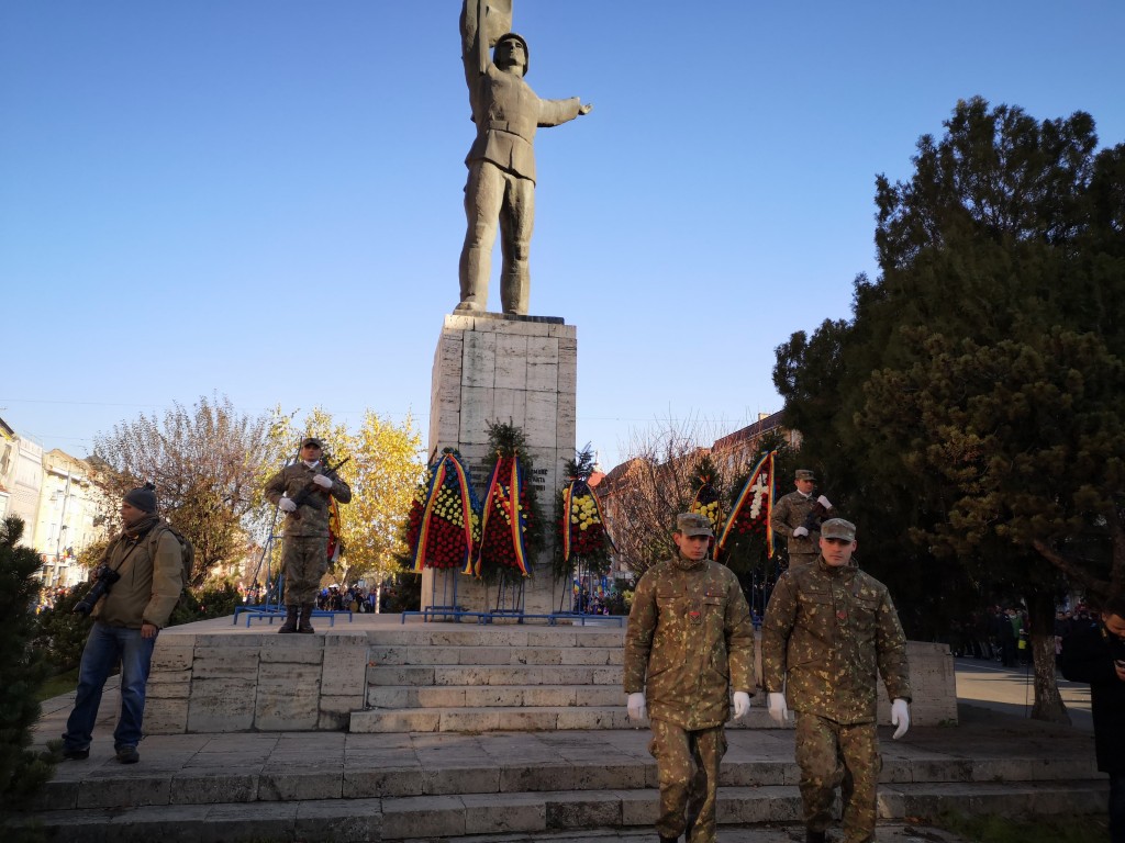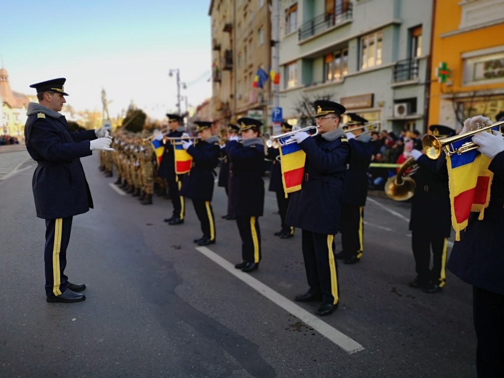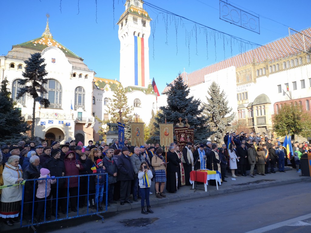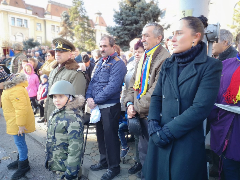 În Piața Victoriei, mii de târgumureșeni au asistat apoi la ceremonie militară și religioasă, în cadrul căreia a fost prezentată semnificația istorică a evenimentului: