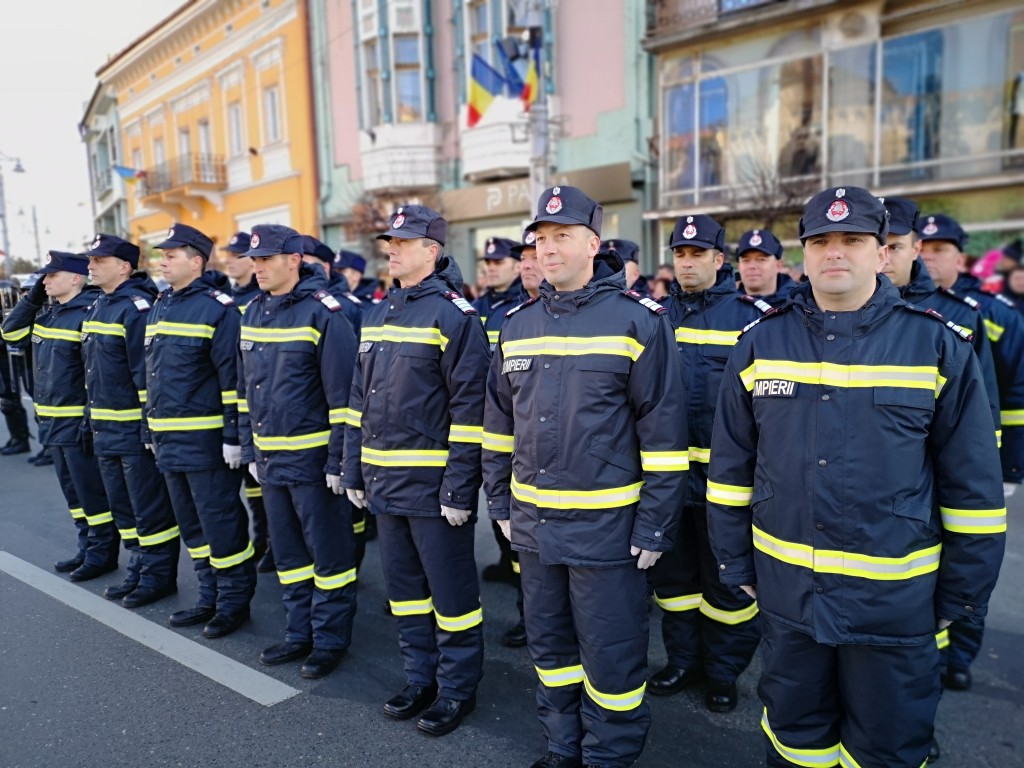 Au avut loc depuneri de coroane iar ceremonia s-a încheiat cu defilarea gărzii de onoare și a tehnicii de luptă și de intervenție.