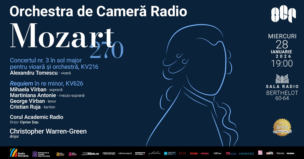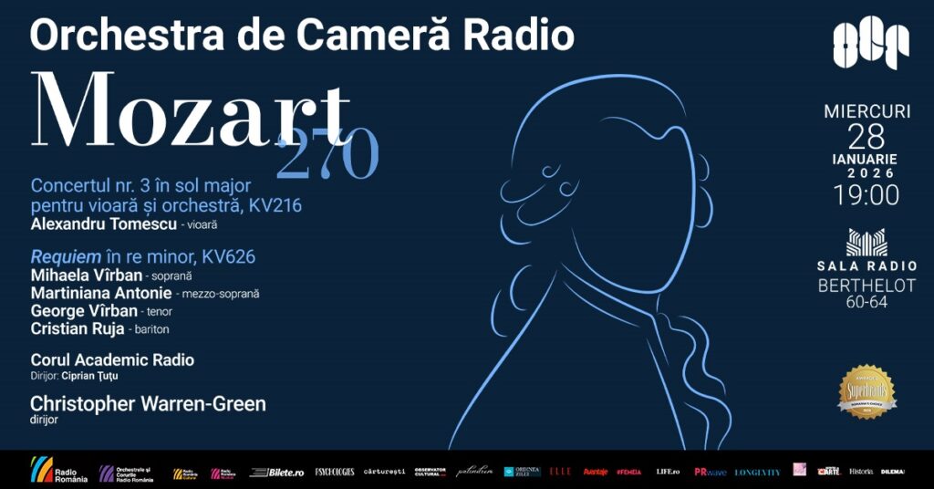Pe 27 ianuarie întreaga lume aniversează 270 de ani de la nașterea lui Amadeus, eveniment pe care Sala Radio îl marchează prin două concerte speciale prezentate de Orchestra de Cameră Radio.