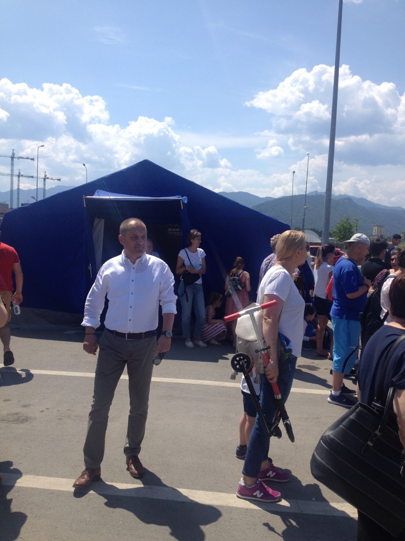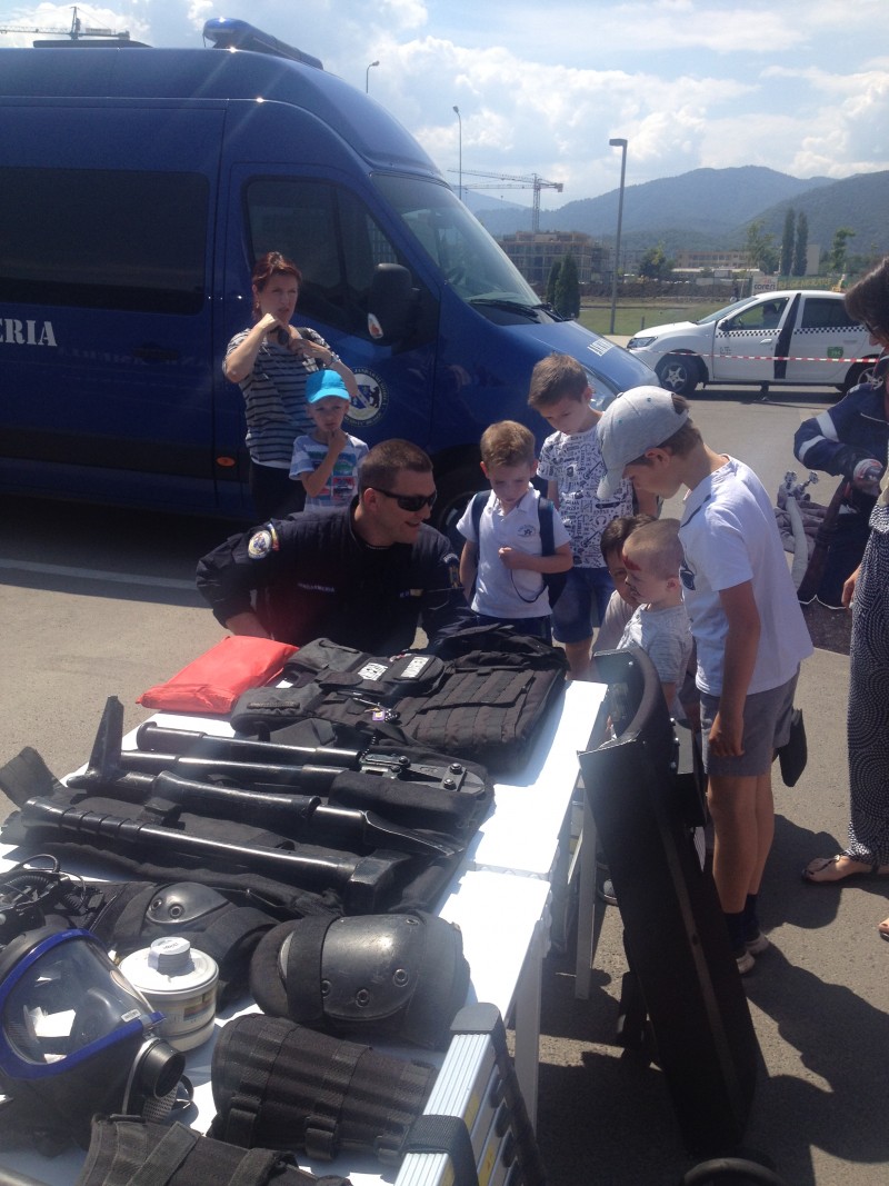 Institutia Prefectului împreună cu Inspectoratul General pentru Situații de Urgență Brașov cu jandarmii brașoveni ne gândim de ceva vreme cum să îi bucurăm pe cei mici. Astfel, după cum vedeți, s-au adunat într-un număr foarte mare, avem un steag național de 56 de metri pătrați pe care l-am arborat pe cea mai înaltă autoscară a pompierilor, avem exerciții specifice ale jandarmilor cu cățeii dresați, avem armamentul din dotare al forțelor de jandarmi Brașov, pentru a le face o zi minunată. Le-am pregătit baloane, le-am pregătit diverse cadouri copiilor, noi ne-am dat interesul, atât Instituția Prefectului cât și jandarmii, salvatorii de la Inspectoratul General pentru Situații de Urgență, suntem împreună, vrem să facem corp comun și să-i bucurăm pe copilași. Le urez din toata inima La mulți ani cu sănătate, să crească mari și frumoși, să-și asculte părinții, să învețe bine și să devină ceea ce își doresc în viață ”