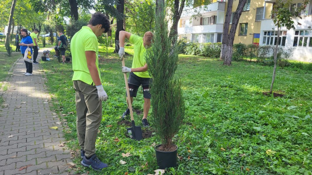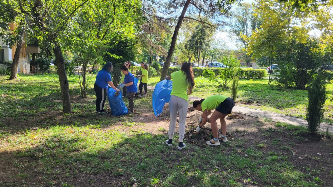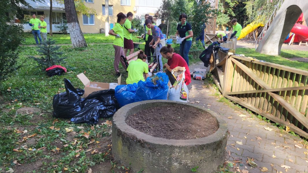 Acțiunea de curățenie de anul acesta cuprinde și înfrumusețarea parcului din Aleea Carpați împreună cu voluntari din Liceul Tehnologic „Ion Vlasiu”.