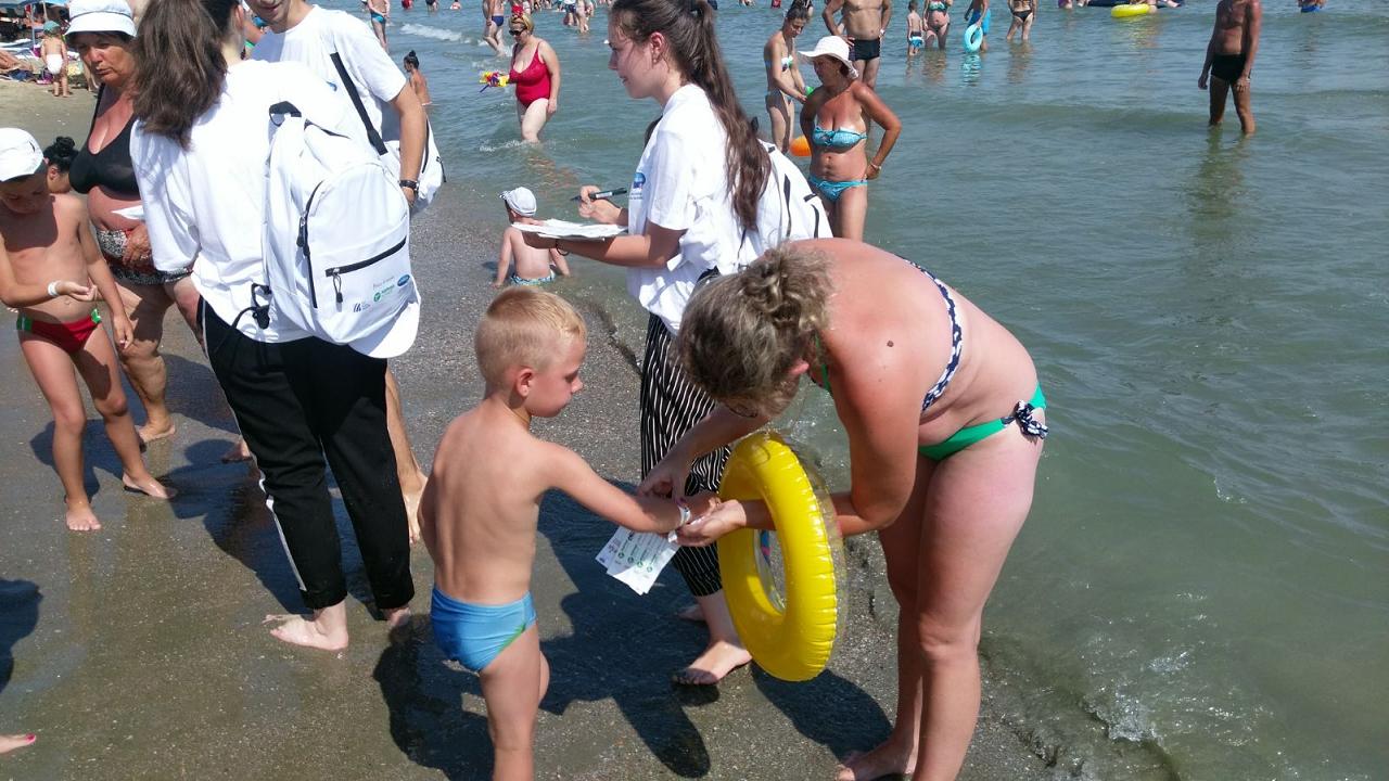 Cristina este unul din cei mai noi voluntari din echipa Crucea Roşie care s-a alăturat campaniei: „Am nevoie de trei cuvinte ca să descriu această experienţă: minunata, diferită, frumoasă! M-am simţit foarte bine ştiind că fac parte din acest proiect care are la bază o idee foarte bună. Am primit feedback bun din partea părinţilor cărora le-am oferit brăţara de vacanţă. De abia aştept să ne întâlnim, la anul, pe plajă”.