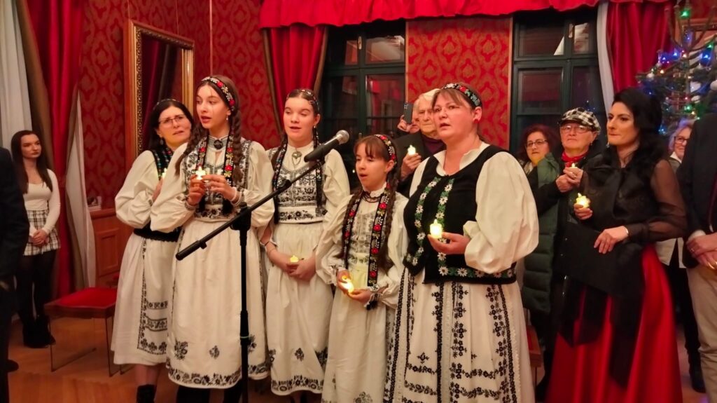 Un moment aparte a fost susținut de Corul Bărbătesc „Speranța” al comunității gaborilor, care a surprins publicul cu trei colinde interpretate în limbile română și romani. Deutsche Singgruppe din Reghin, a Forumului Democrat al Germanilor, condusă de profesoara Zey Martina, a adus emoție și zâmbete prin colinde în limba germană.