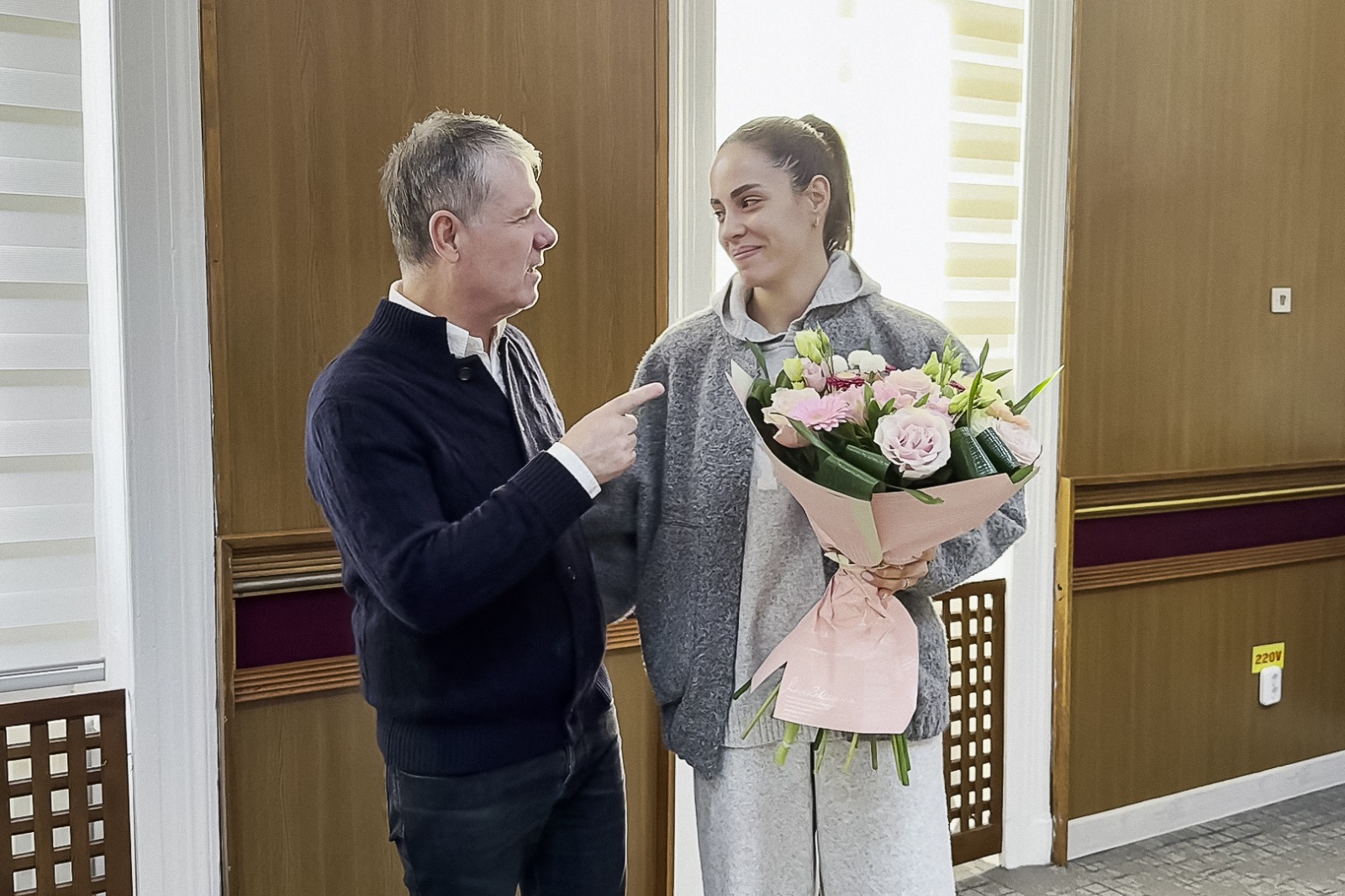 Handbalista Sorina Grozav a primit joi, 11 decembrie, la Primăria Brașov, felicitările edilului George Scripcaru pentru performanțele extraordinare obținute în anul 2025.